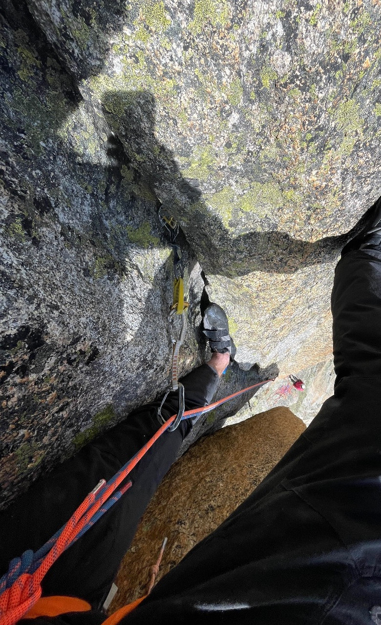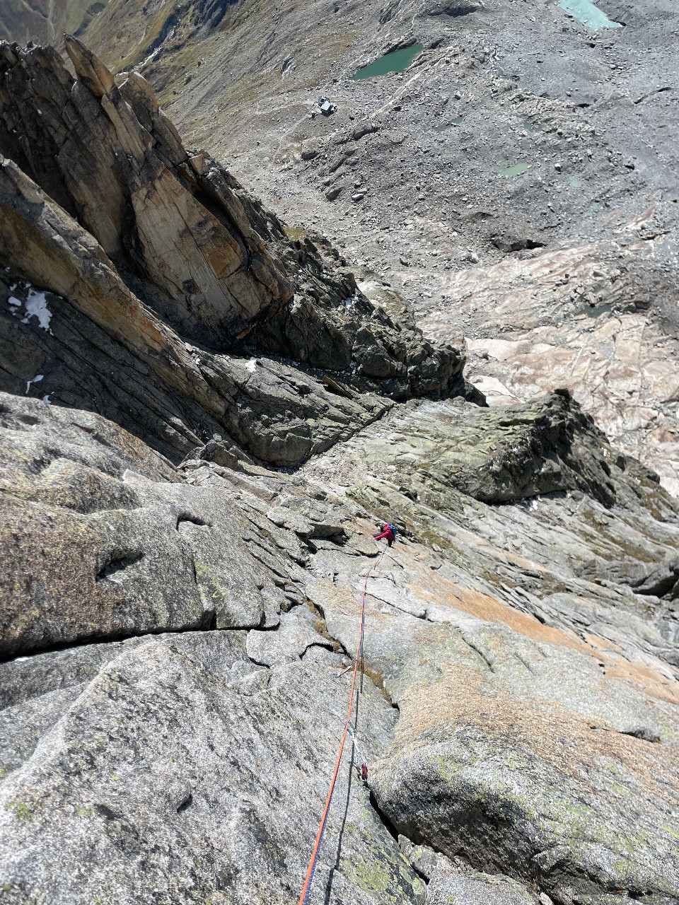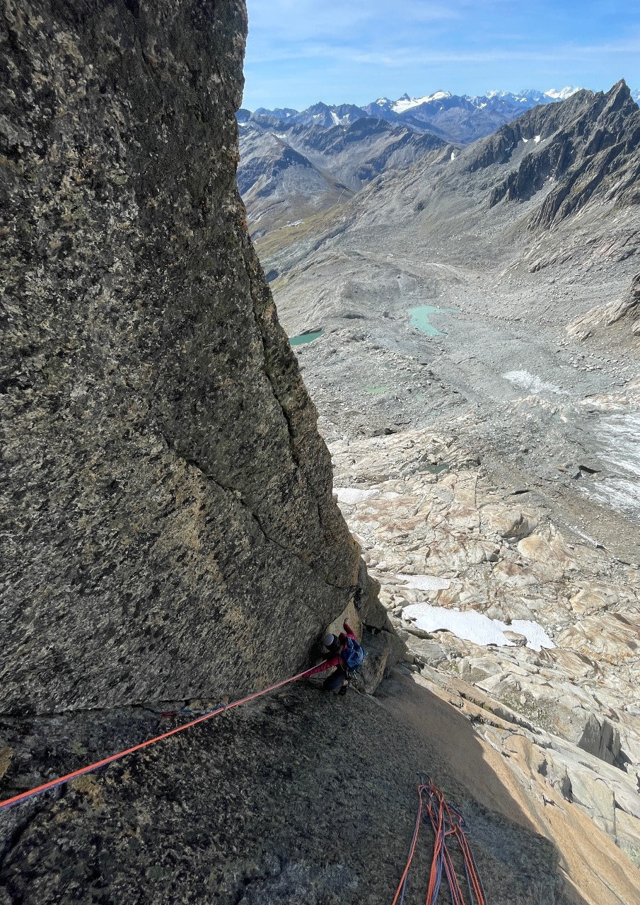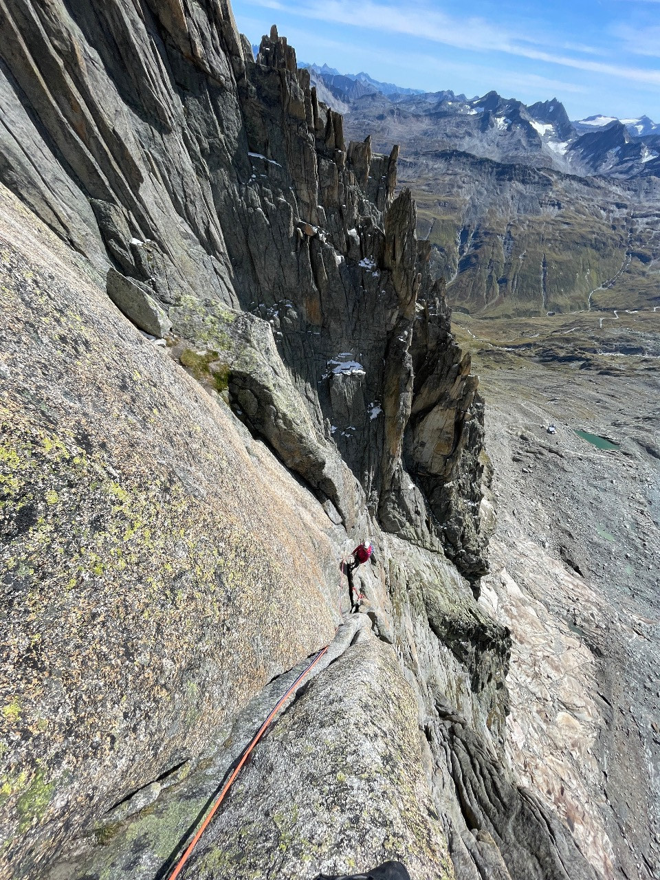 Risskletterei in der ersten Seillänge. Eindrücklich und traurig zugleich, wie schnell der Gletscher verschwindet.
